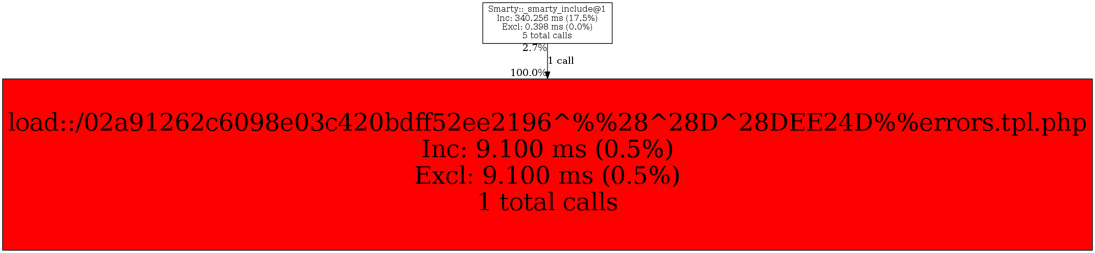 | Smarty::_smarty_include@1 | 1 | 100.0% | 9,100 | 100.0% | 0 | N/A% | 3,336 | 100.0% | 0 | N/A% |