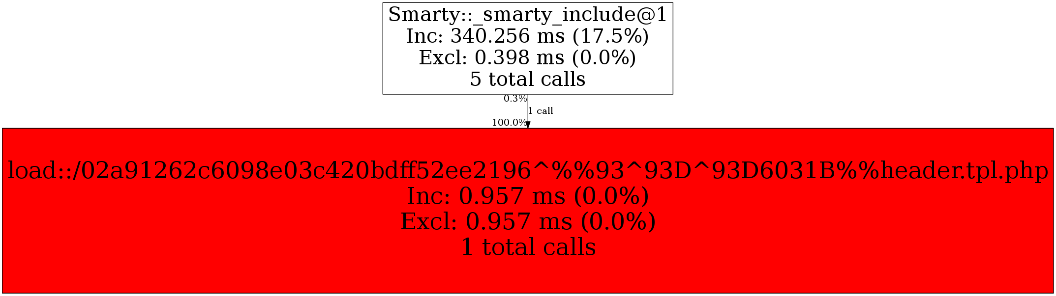 | Smarty::_smarty_include@1 | 1 | 100.0% | 957 | 100.0% | 0 | N/A% | 3,336 | 100.0% | 0 | N/A% |