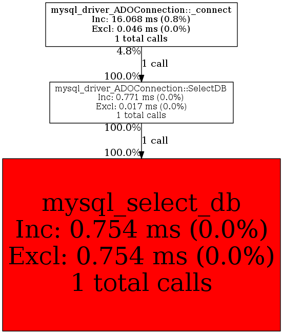| mysql_driver_ADOConnection::_connect | 1 | 100.0% | 771 | 100.0% | 0 | N/A% | 2,760 | 100.0% | 936 | 100.0% |
