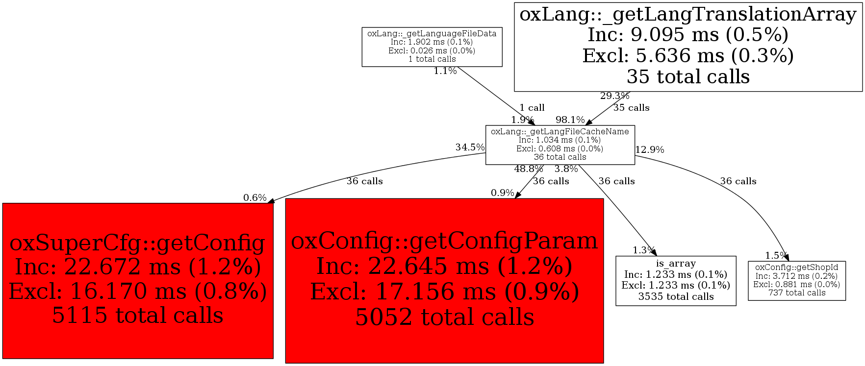 | oxLang::_getLanguageFileData | 1 | 2.8% | 20 | 1.9% | 0 | 0.0% | 1,288 | 9.0% | 0 | 0.0% |