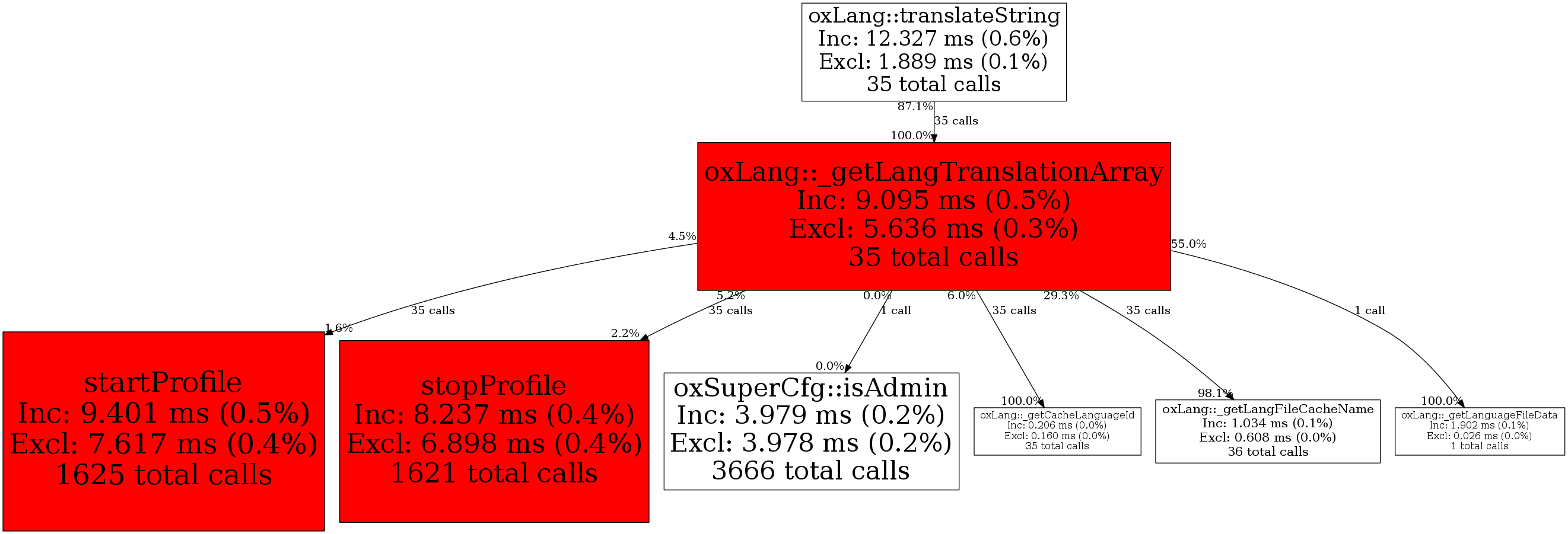 | oxLang::translateString | 35 | 100.0% | 9,095 | 100.0% | 8,000 | 100.0% | 6,549,696 | 100.0% | 911,192 | 100.0% |