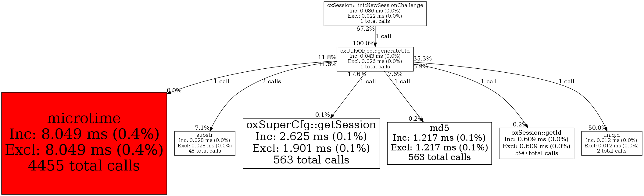 | oxUtilsObject::generateUId | 1 | 2.4% | 43 | 0.0% | 0 | 0.0% | 10,368 | 0.0% | 648 | 0.0% |