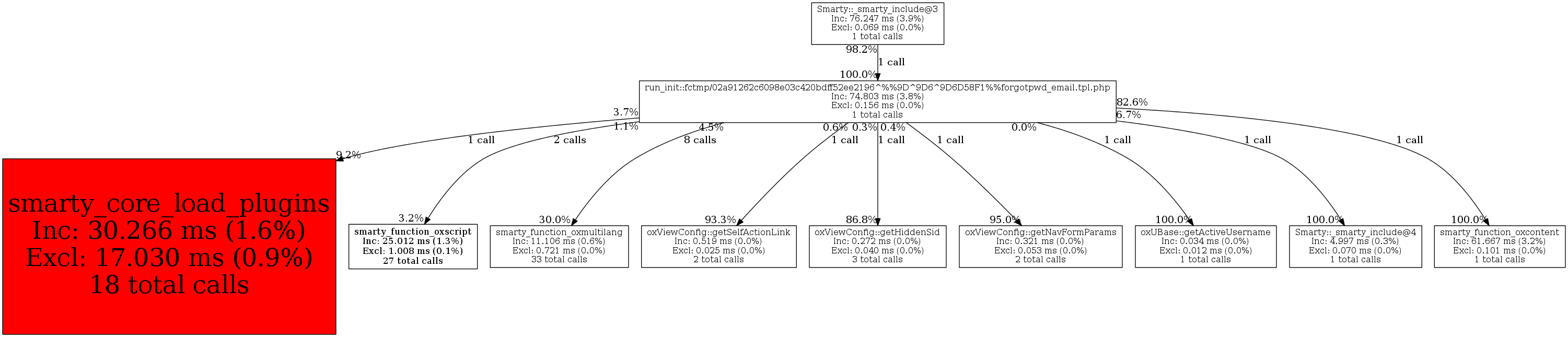 | Smarty::_smarty_include@3 | 1 | 100.0% | 74,803 | 100.0% | 8,000 | 100.0% | 679,536 | 100.0% | 711,480 | 100.0% |