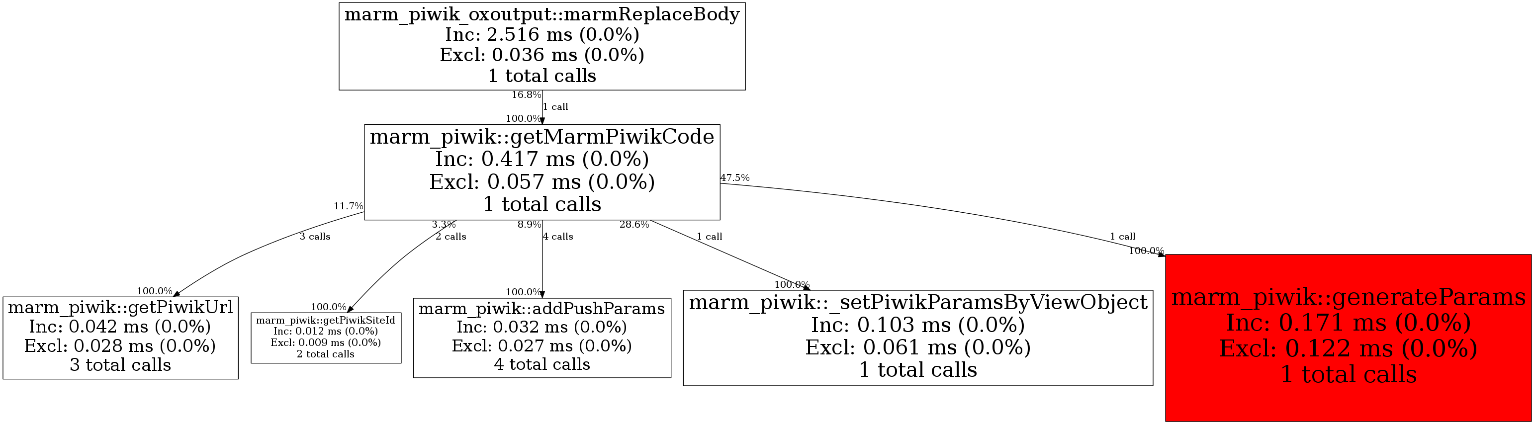 | marm_piwik::generateParams | 1 | 9.1% | 171 | 41.0% | 0 | N/A% | 12,080 | 26.3% | 0 | N/A% |