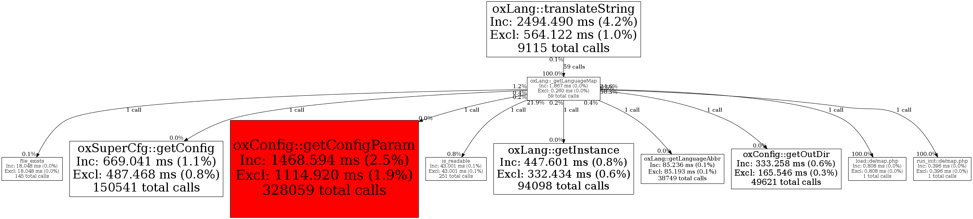 | oxLang::_getLanguageMap | 59 | 79.7% | 1,867 | 0.0% | 0 | 0.0% | 280,776 | 0.6% | 270,856 | 0.1% |