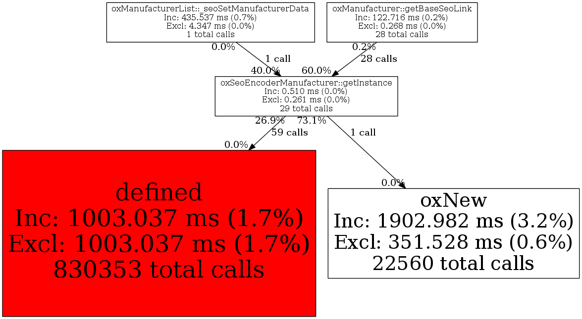 | oxManufacturer::getBaseSeoLink | 28 | 96.6% | 306 | 60.0% | 0 | N/A% | 1,128 | 6.2% | 1,128 | 6.2% |