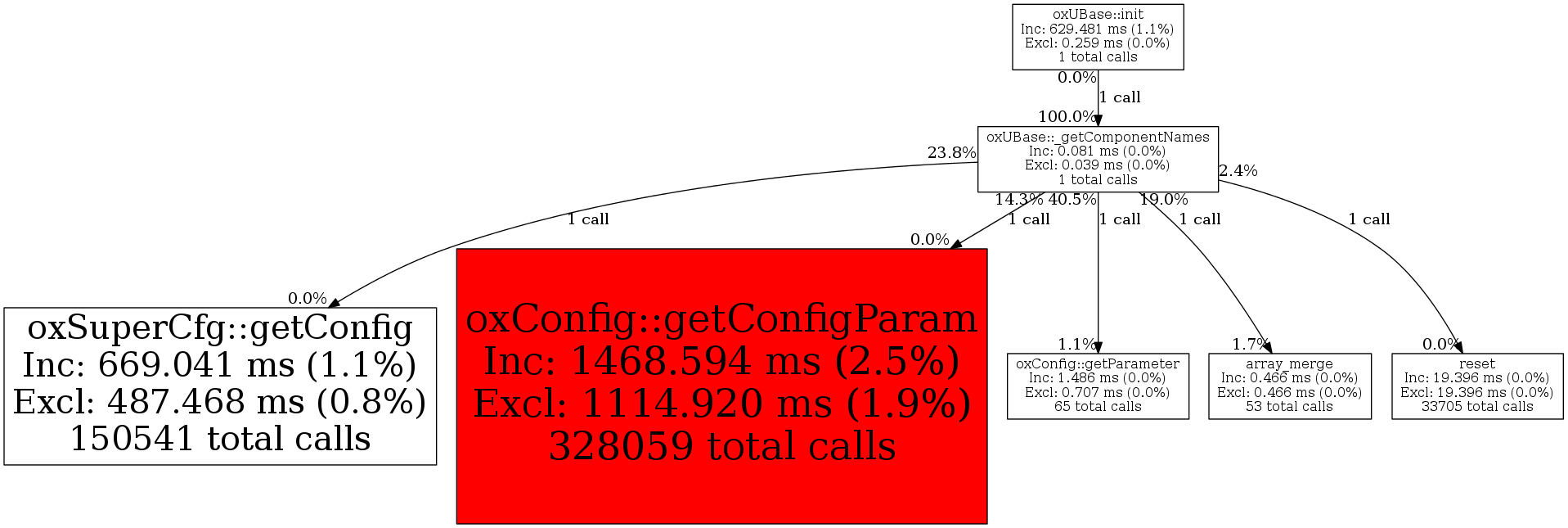 | oxUBase::_getComponentNames | 1 | 8.3% | 81 | 0.0% | 0 | 0.0% | 15,632 | 0.0% | 15,512 | 0.0% |