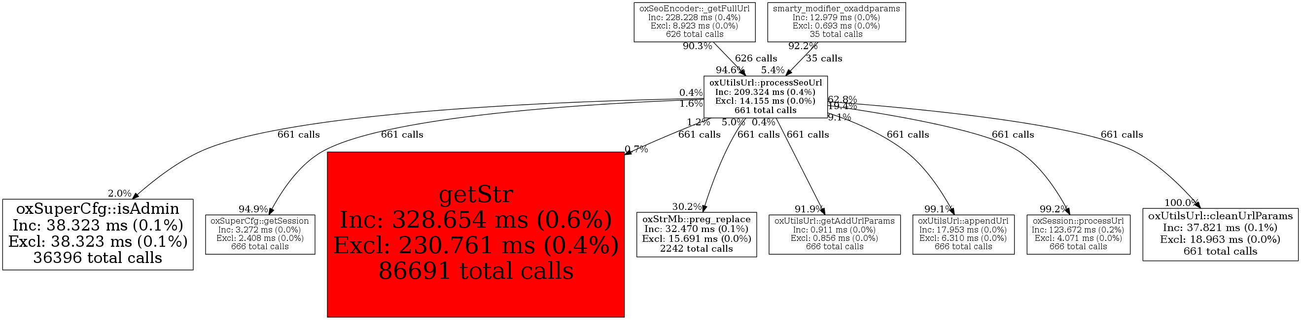| oxSession::processUrl | 661 | 12.5% | 122,663 | 58.6% | 116,006 | 49.2% | 1,112 | 0.6% | 4,200 | 10.1% |