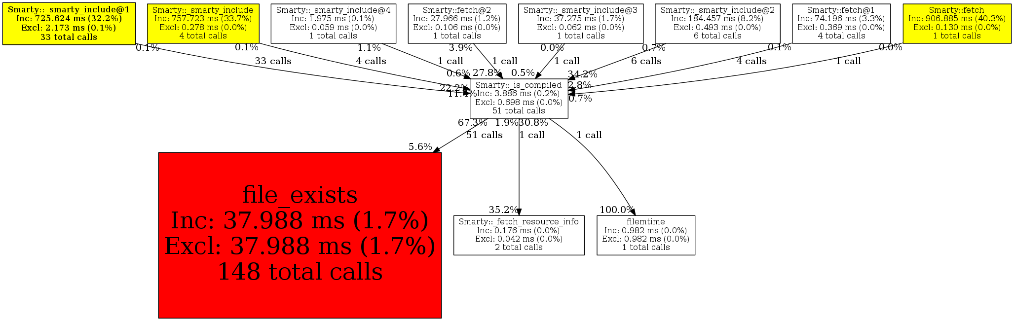 | Smarty::_smarty_include@4 | 1 | 2.0% | 22 | 0.6% | 0 | N/A% | 1,184 | 4.2% | 0 | 0.0% |