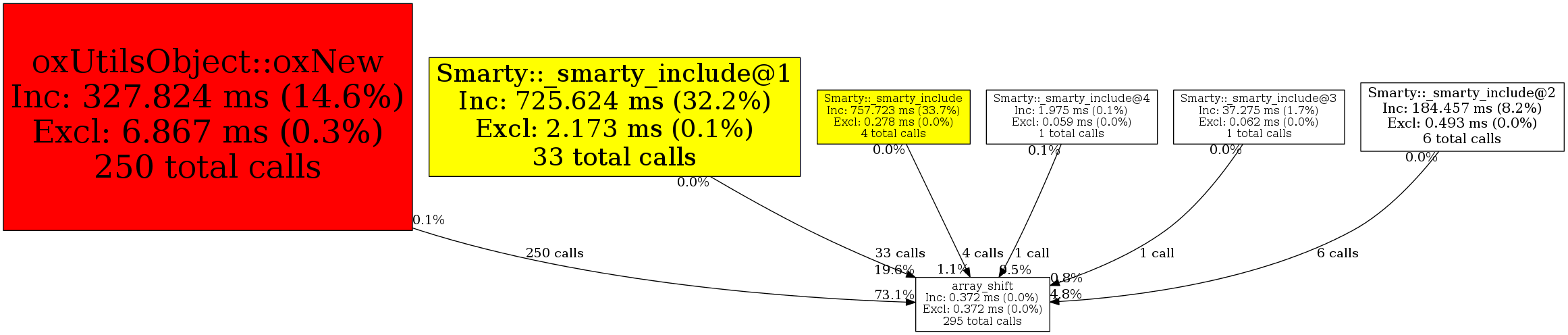 | Smarty::_smarty_include@2 | 6 | 2.0% | 18 | 4.8% | 0 | N/A% | 3,304 | 12.3% | 0 | 0.0% |