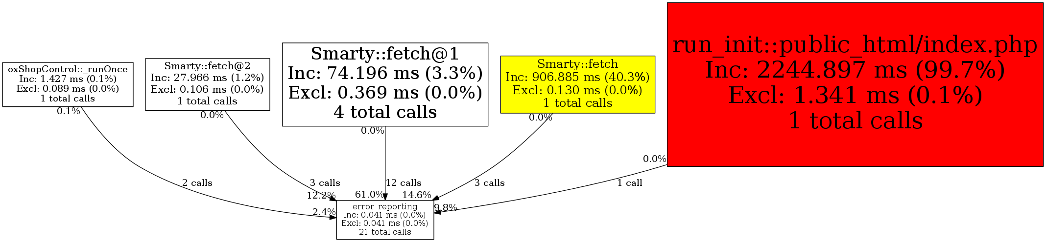 | Smarty::fetch@1 | 12 | 57.1% | 25 | 61.0% | 0 | N/A% | 2,448 | 30.4% | 0 | 0.0% |