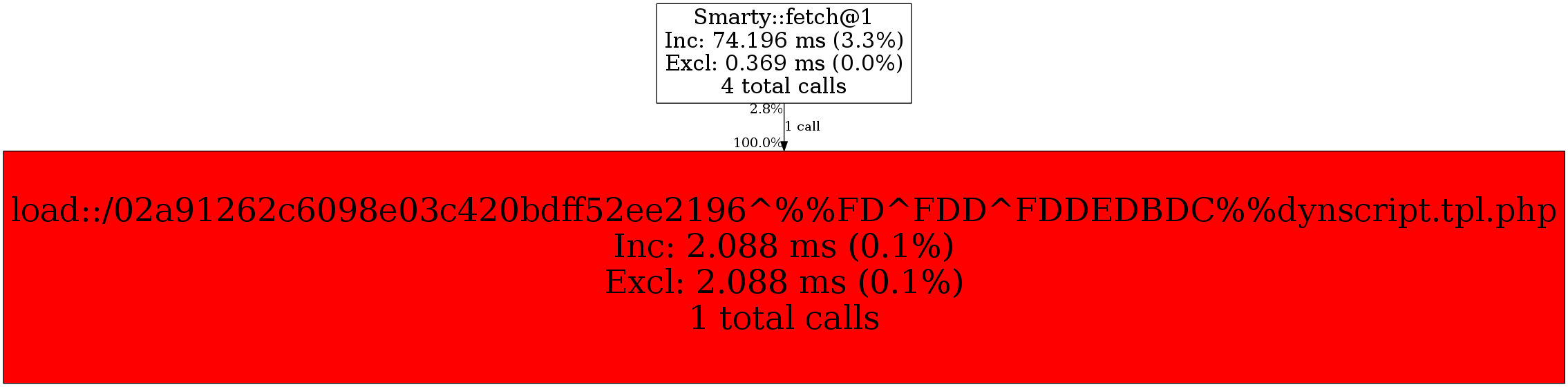 | Smarty::fetch@1 | 1 | 100.0% | 2,088 | 100.0% | 0 | N/A% | 3,328 | 100.0% | 0 | N/A% |