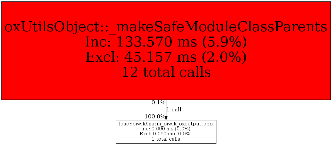 | oxUtilsObject::_makeSafeModuleClassParents | 1 | 100.0% | 90 | 100.0% | 0 | N/A% | 17,712 | 100.0% | 15,936 | 100.0% |
