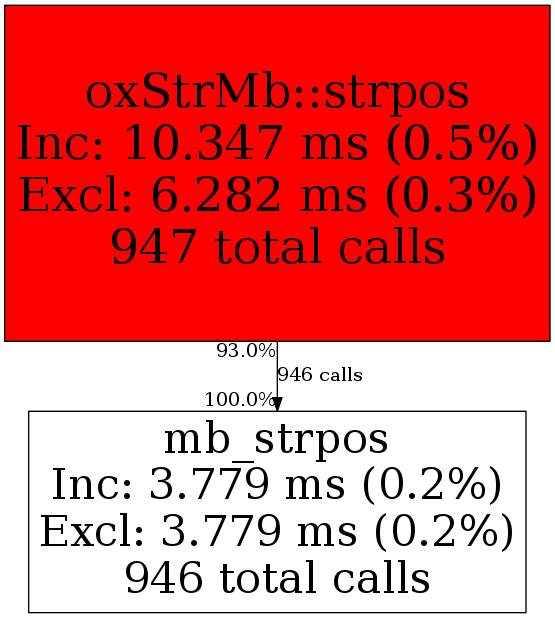 | oxStrMb::strpos | 946 | 100.0% | 3,779 | 100.0% | 16,002 | 100.0% | 1,088 | 100.0% | 1,088 | 100.0% |