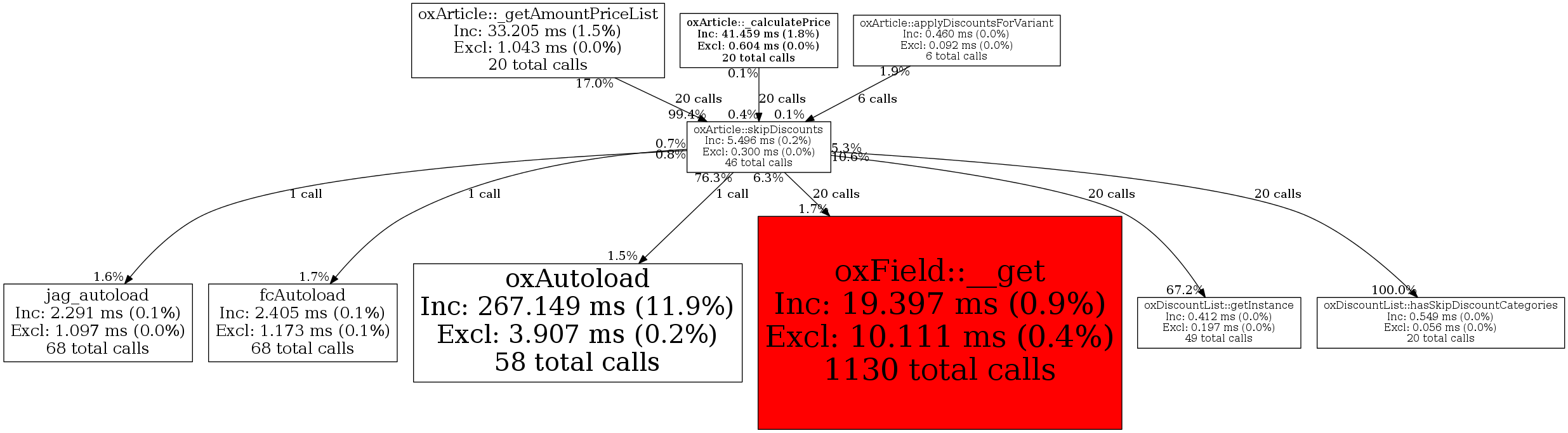 | oxField::__get | 20 | 31.7% | 326 | 5.9% | 0 | N/A% | 6,224 | 7.6% | 1,240 | 2.0% |