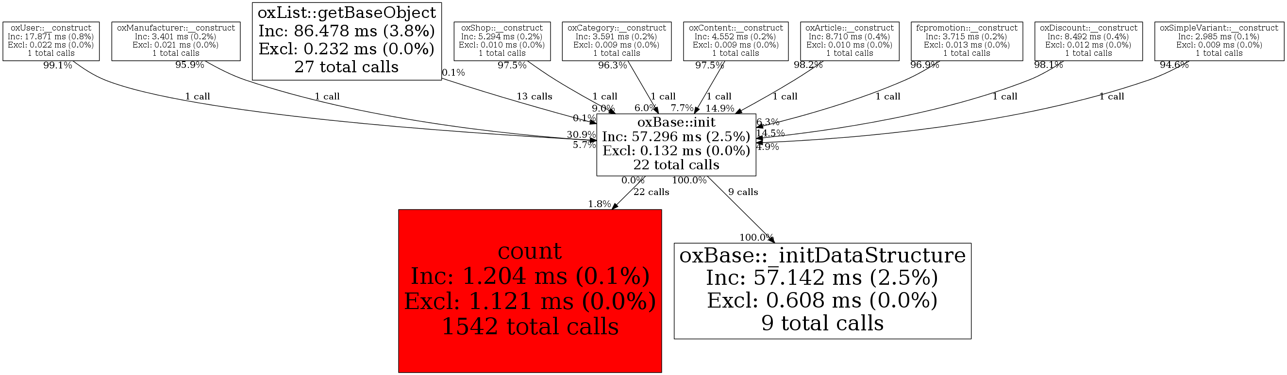 | oxBase::init | 22 | 37.3% | 57,296 | 2.5% | 8,001 | 0.9% | 254,696 | 1.1% | 287,848 | 1.2% |