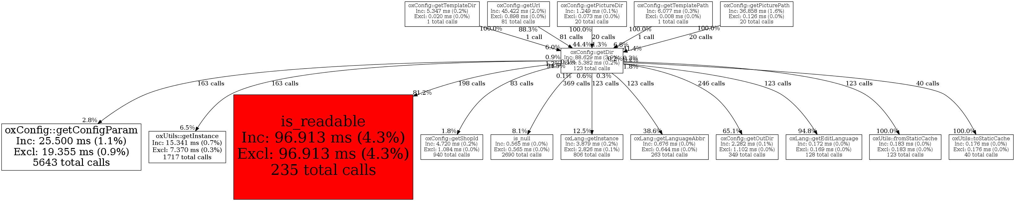 | oxConfig::getDir | 123 | 6.5% | 88,629 | 3.9% | 8,001 | 0.9% | 44,448 | 0.2% | 32,144 | 0.1% |