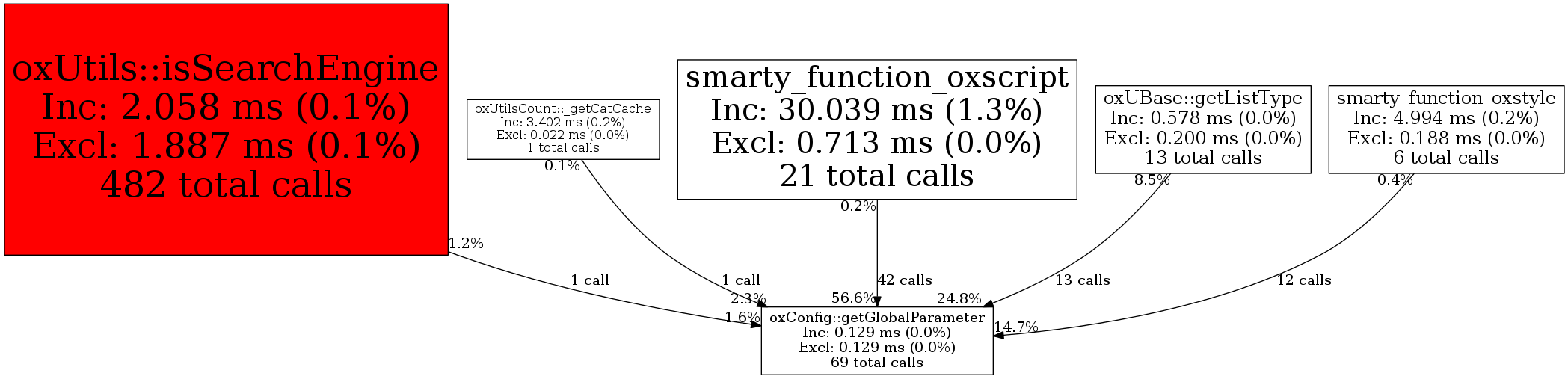 | oxConfig::getGlobalParameter | 69 | 92.0% | 129 | 0.0% | 0 | 0.0% | 7,696 | 0.0% | 1,552 | 0.0% |