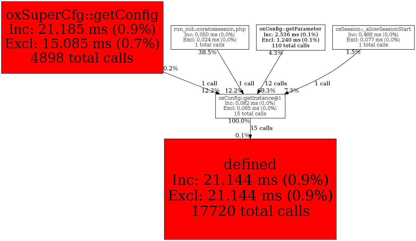 | oxConfig::getInstance@1 | 15 | 41.7% | 82 | 0.0% | 0 | 0.0% | 5,944 | 0.0% | 5,112 | 0.0% |