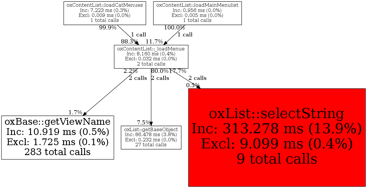 | oxContentList::_loadMenue | 2 | 14.3% | 8,160 | 0.4% | 0 | 0.0% | 104,760 | 0.5% | 106,208 | 0.5% |