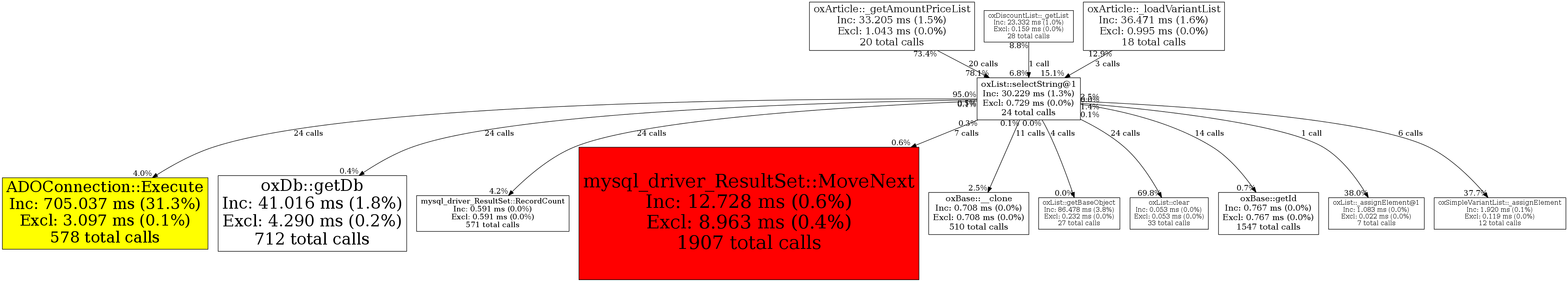 | oxList::selectString@1 | 24 | 14.2% | 30,229 | 1.3% | 4,000 | 0.4% | 93,448 | 0.4% | 160,784 | 0.7% |