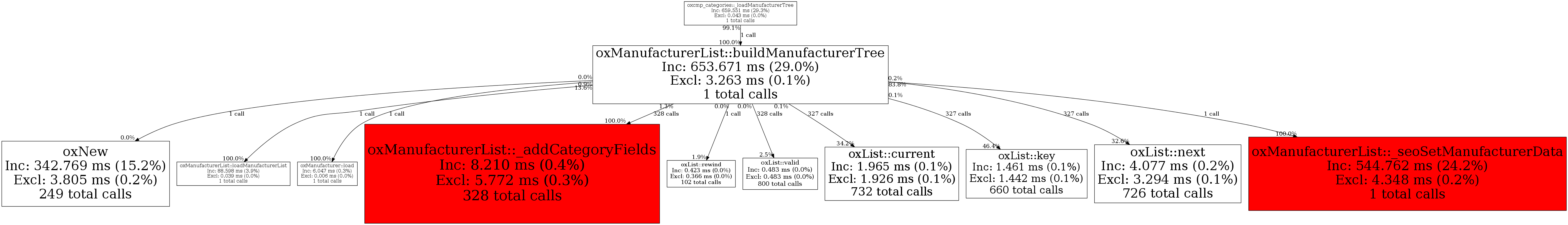 | oxManufacturerList::loadManufacturerList | 1 | 0.1% | 88,598 | 13.6% | 80,005 | 23.8% | 4,635,344 | 74.4% | 4,693,296 | 74.1% |