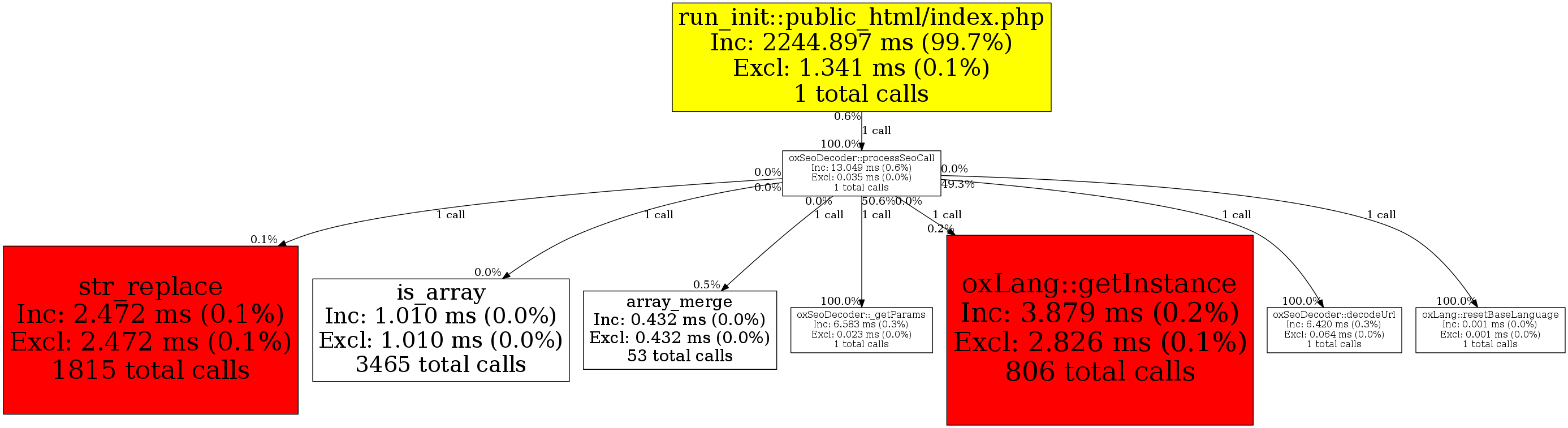 | oxSeoDecoder::processSeoCall | 1 | 7.1% | 13,049 | 0.6% | 4,000 | 0.4% | 255,304 | 1.1% | 252,392 | 1.1% |
