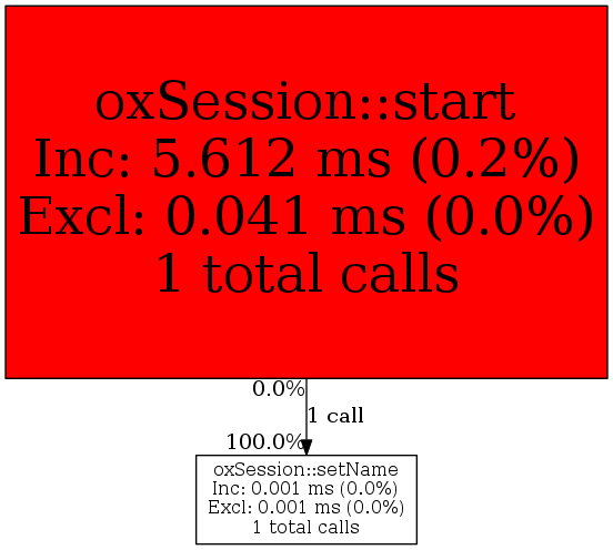 | oxSession::start | 1 | 100.0% | 1 | 100.0% | 0 | N/A% | 1,096 | 100.0% | 0 | N/A% |