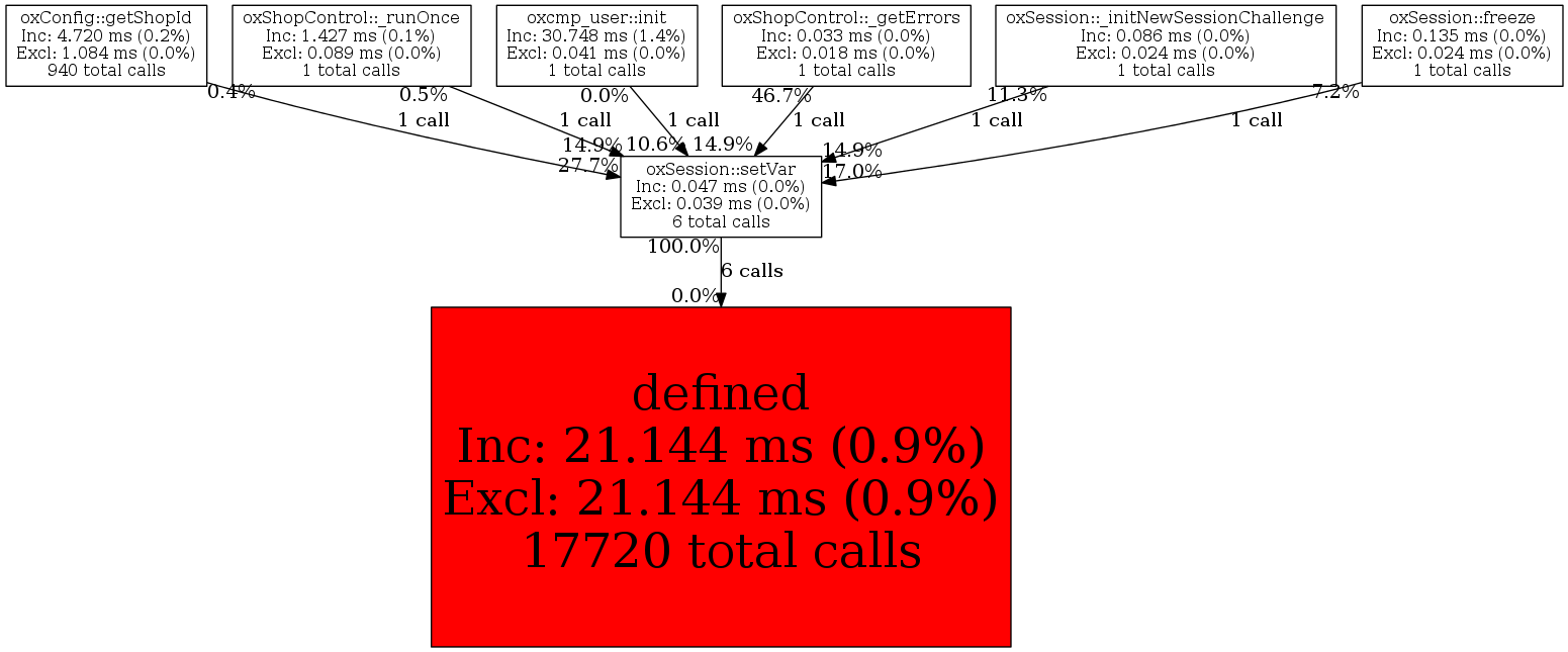 | oxSession::setVar | 6 | 33.3% | 47 | 0.0% | 0 | 0.0% | 9,440 | 0.0% | 3,840 | 0.0% |