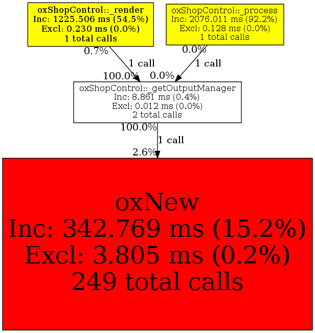 | oxShopControl::_getOutputManager | 2 | 22.2% | 8,861 | 0.4% | 0 | 0.0% | 66,312 | 0.3% | 66,856 | 0.3% |