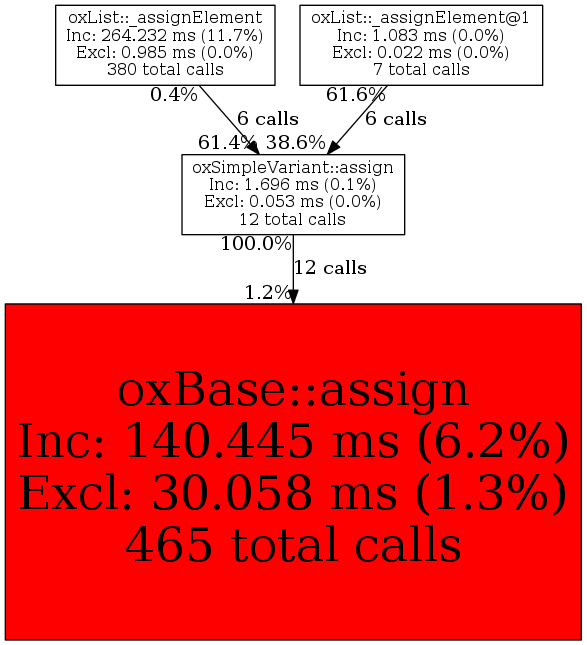 | oxSimpleVariant::assign | 12 | 40.0% | 1,696 | 0.1% | 4,000 | 0.4% | 30,224 | 0.1% | 14,120 | 0.1% |
