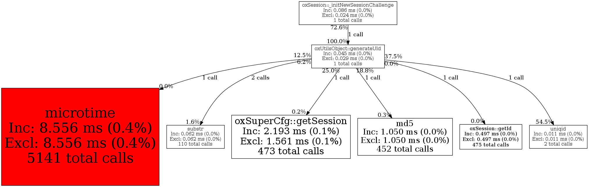 | oxUtilsObject::generateUId | 1 | 7.1% | 45 | 0.0% | 0 | 0.0% | 10,960 | 0.0% | 0 | 0.0% |