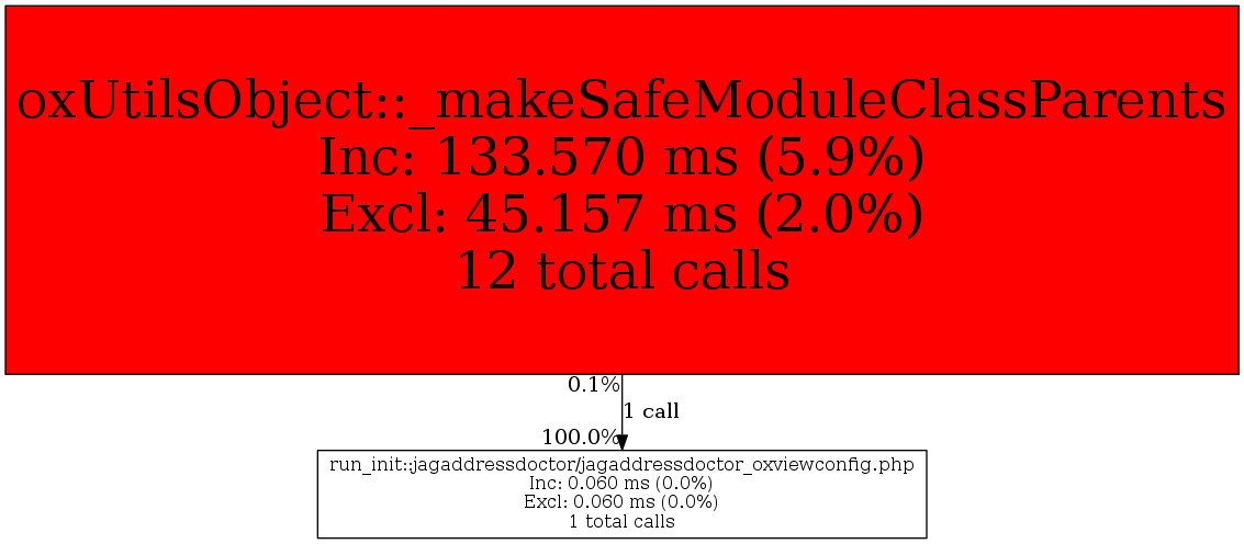 | oxUtilsObject::_makeSafeModuleClassParents | 1 | 100.0% | 60 | 100.0% | 0 | N/A% | 45,744 | 100.0% | 43,080 | 100.0% |