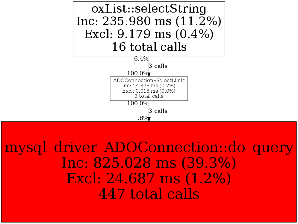 | ADOConnection::SelectLimit | 3 | 25.0% | 14,478 | 0.7% | 0 | 0.0% | 93,384 | 0.4% | 53,720 | 0.2% |