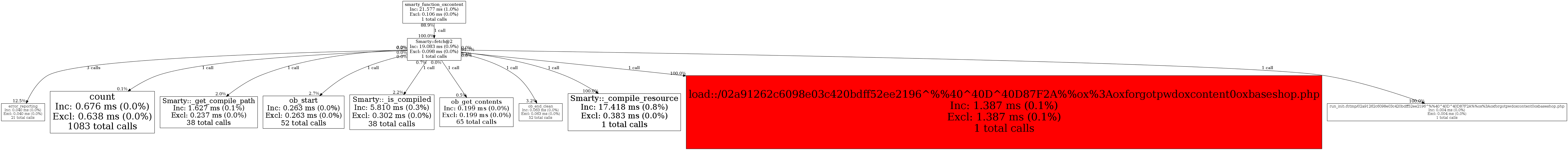 | Smarty::fetch@2 | 1 | 5.3% | 19,083 | 0.9% | 4,000 | 0.6% | 246,496 | 1.1% | 266,192 | 1.2% |