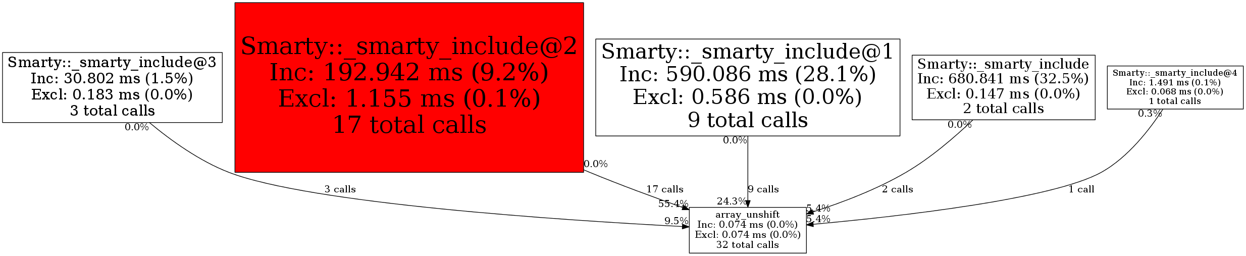 | Smarty::_smarty_include@2 | 17 | 53.1% | 41 | 55.4% | 0 | N/A% | 3,144 | 33.6% | 712 | 100.0% |