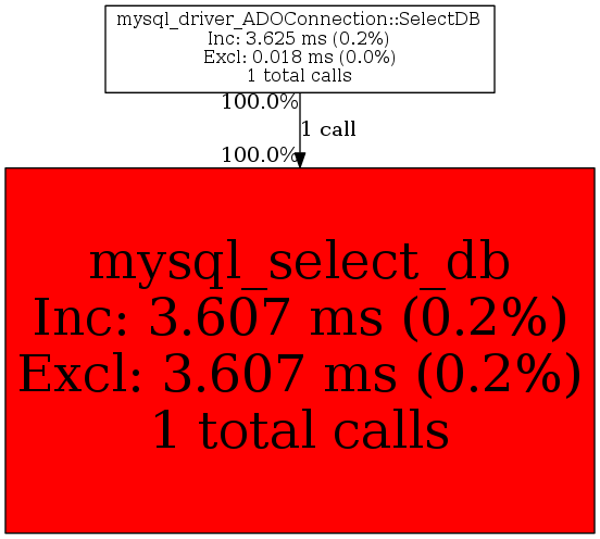 | mysql_driver_ADOConnection::SelectDB | 1 | 100.0% | 3,607 | 100.0% | 0 | N/A% | 1,120 | 100.0% | 0 | N/A% |