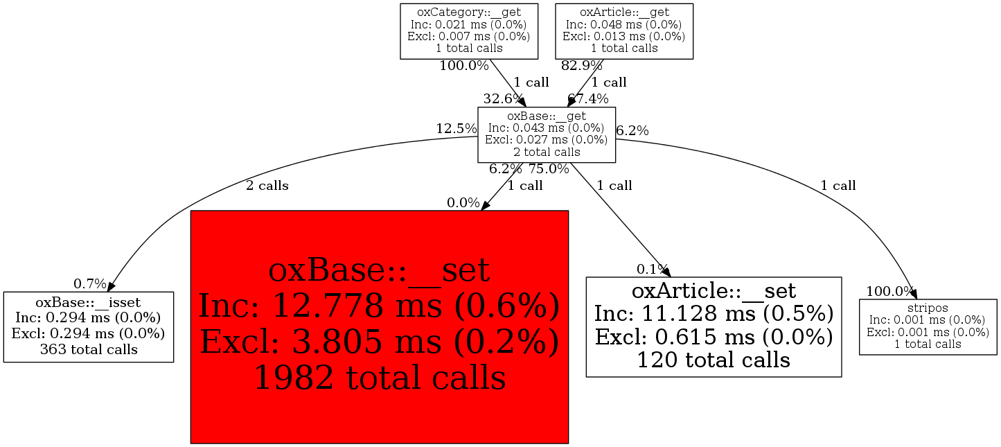 | oxCategory::__get | 1 | 50.0% | 14 | 32.6% | 0 | N/A% | 4,312 | 50.0% | 3,488 | 100.0% |