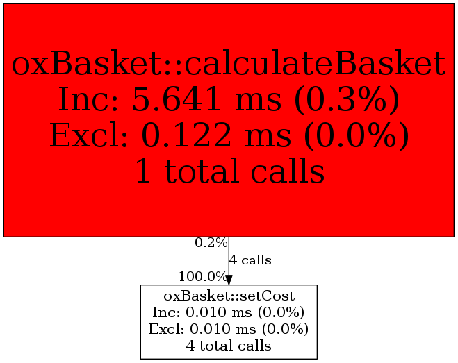| oxBasket::setCost | 4 | 40.0% | 10 | 0.0% | 0 | 0.0% | 1,648 | 0.0% | 1,528 | 0.0% |