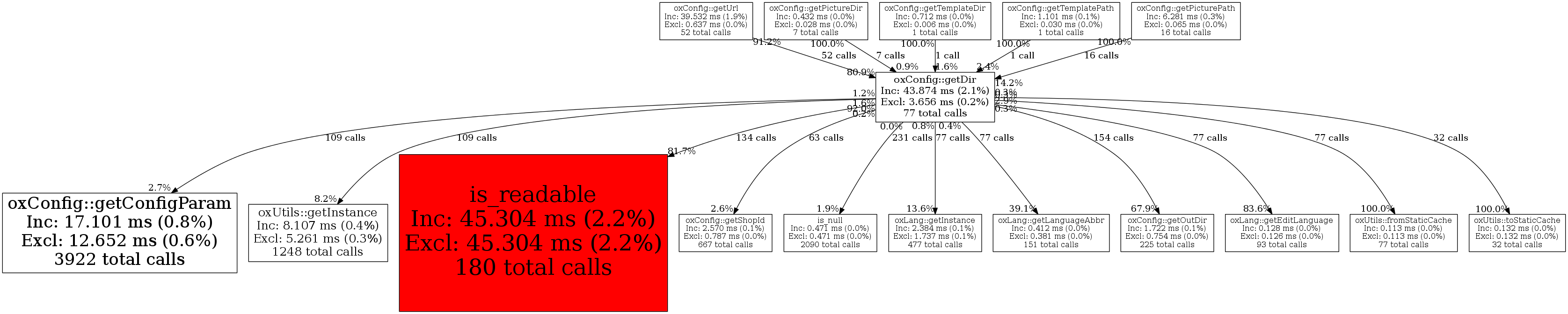 oxConfig::getConfigParam109 9.6% 469 1.1% 0 0.0% 1,104 3.0% 4,576 13.5%