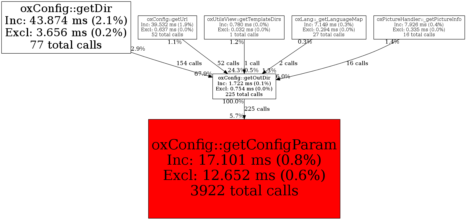 | oxConfig::getOutDir | 225 | 49.3% | 1,722 | 0.1% | 0 | 0.0% | 43,040 | 0.2% | 9,696 | 0.0% |