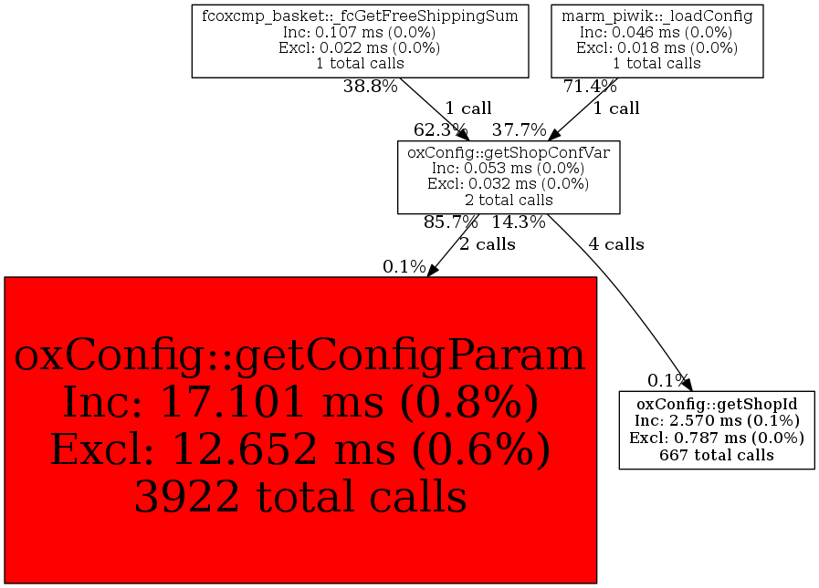 | oxConfig::getShopConfVar | 2 | 14.3% | 53 | 0.0% | 0 | 0.0% | 5,280 | 0.0% | 4,168 | 0.0% |