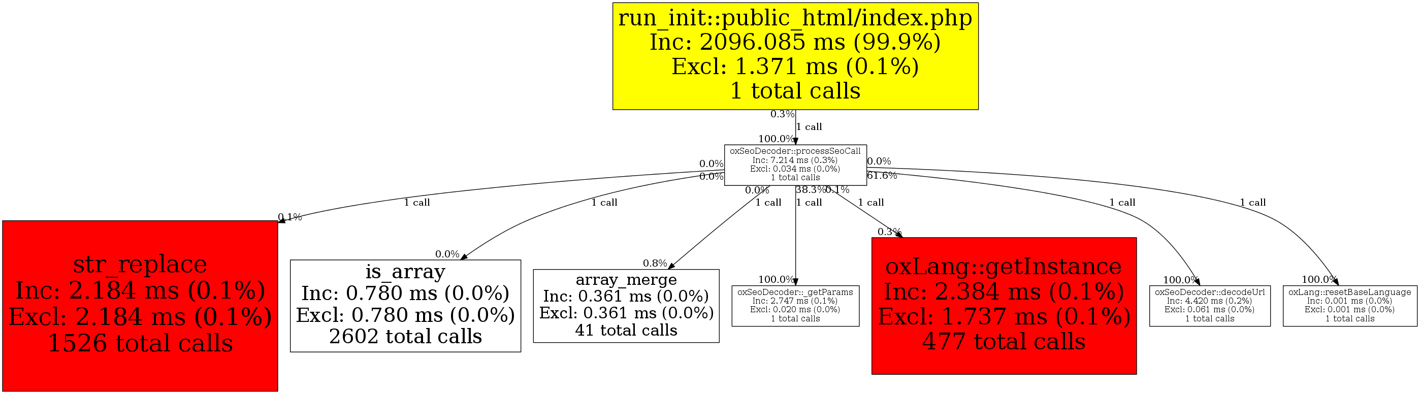 | oxSeoDecoder::processSeoCall | 1 | 7.1% | 7,214 | 0.3% | 4,000 | 0.6% | 255,728 | 1.1% | 253,104 | 1.1% |