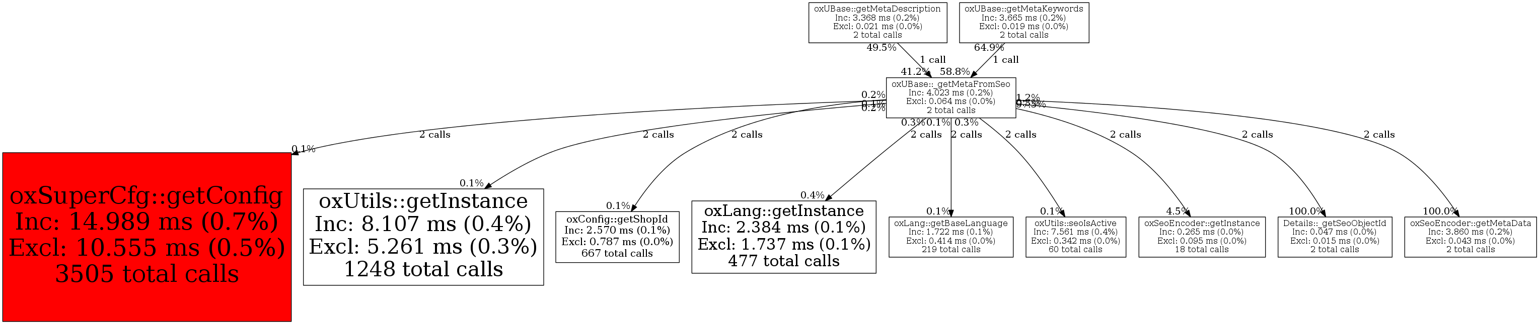 | oxSuperCfg::getConfig | 2 | 11.1% | 9 | 0.2% | 0 | N/A% | 1,264 | 5.4% | 0 | 0.0% |