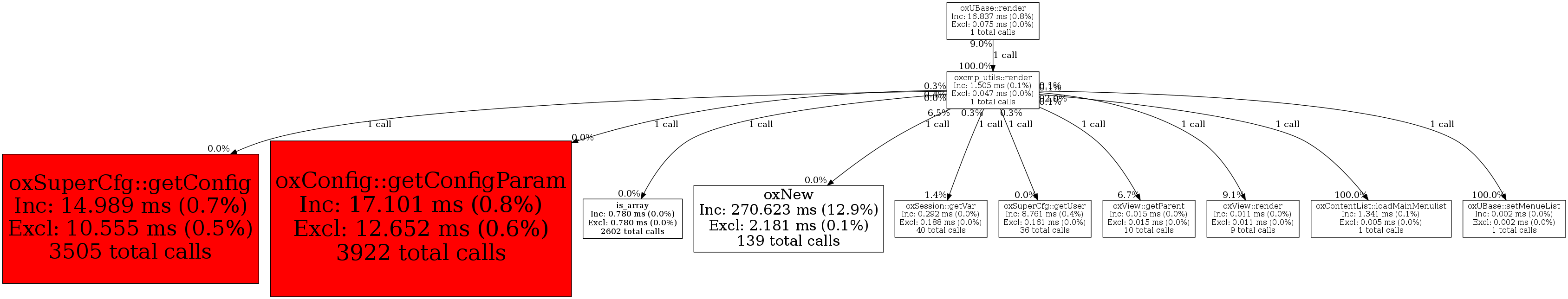 | oxConfig::getConfigParam | 1 | 10.0% | 6 | 0.4% | 0 | N/A% | 1,184 | 4.4% | 0 | 0.0% |