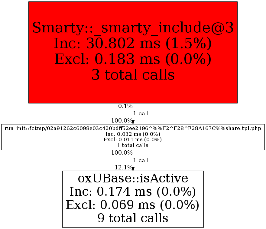 | Smarty::_smarty_include@3 | 1 | 100.0% | 32 | 100.0% | 0 | N/A% | 2,744 | 100.0% | 0 | N/A% |