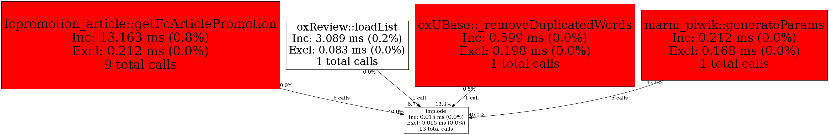 | oxReview::loadList | 1 | 7.7% | 1 | 6.7% | 0 | N/A% | 1,216 | 19.6% | 0 | 0.0% |