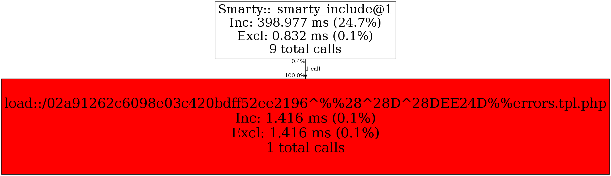 | Smarty::_smarty_include@1 | 1 | 100.0% | 1,416 | 100.0% | 0 | N/A% | 3,336 | 100.0% | 0 | N/A% |
