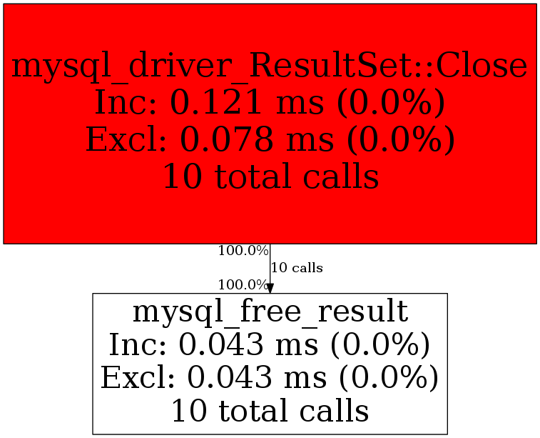 | mysql_driver_ResultSet::Close | 10 | 100.0% | 43 | 100.0% | 0 | N/A% | -17,448 | -100.0% | 688 | 100.0% |