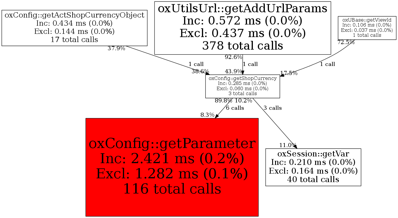 | oxConfig::getParameter | 6 | 66.7% | 202 | 70.9% | 0 | N/A% | 1,592 | 24.0% | 2,376 | 35.5% |